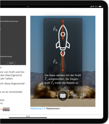 … aber manchmal braucht man eben doch ein paar Worte — und vielleicht sogar manchmal noch mehr als nur ein paar. Mit einem Tipp auf das Popover-Symbol wird ein Fenster eingeblendet, in welchem weitere relevante Infos zu einem Bild enthalten sein können. Das können zum Beispiel Texte oder erklärende Bilder und Diagramme sein. Ein Vorteil davon ist, dass ein Buchseite nicht mit Text überladen wird. So kannst du die Informationen dann einblenden, wenn du sie benötigst.